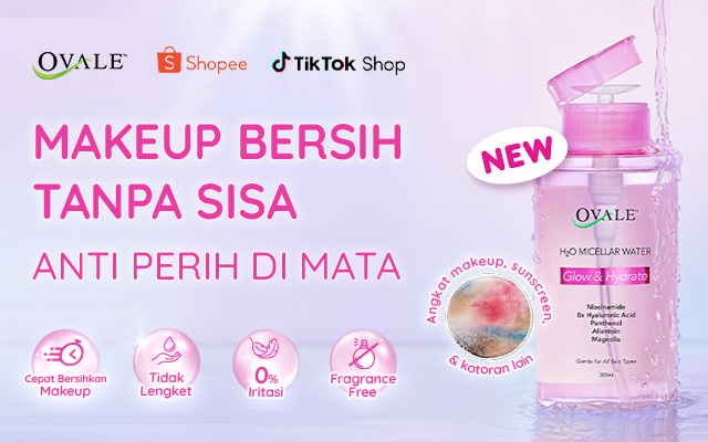 Ovale H2O Micellar Water 300ml mampu bersihkan makeup dengan maksimal & cepat. Dengan kandungan Niacinamide & Hydraboost (8x Hyaluronic Acid, Panthenol, dan Allantoin) tanpa membuat perih (iritasi), kering ketarik dan lengket. Lembabnya pas.